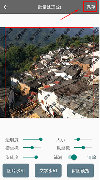 4、全部搞定之后,点右下角的【保存】就行了,处理好的图片会自动存到你手机里。