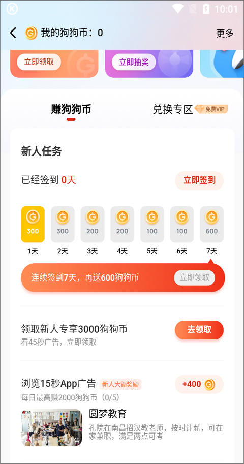 2、在任务中心里,你可以通过完成一些小任务来免费赚平台的酷狗币。