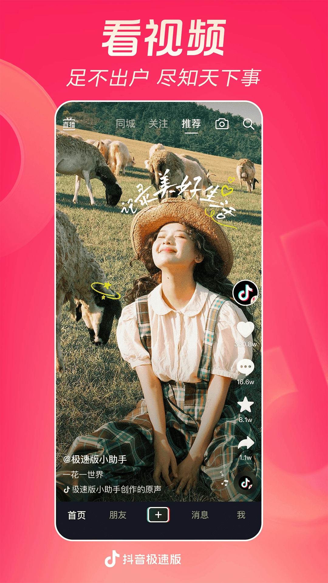 抖音极速版领钱是一个非常热门的短视频分享软件,用户都可以发布自己拍摄的原创短视频,这个版本去除了保存水印、广告推送和弹窗等,使用非常流畅,可以随时随地的观看别人的短视频,有非常多有意思的视频,空闲的时候刷一刷。