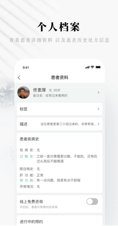 一、线上复诊管理,帮助医生开线上工作室,在线优化管理患者,提供健康调理方案。