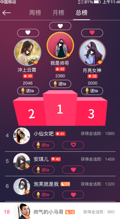 3.可以跟别的用户共同连麦合唱歌曲,进行更丰富的互动。