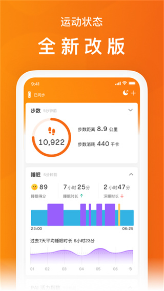 2、连接多种智能设备:支持小米手环、米动手表青春版、小米体脂秤、小米体重秤、AMAZFIT运动手表、米动智芯等智能设备;