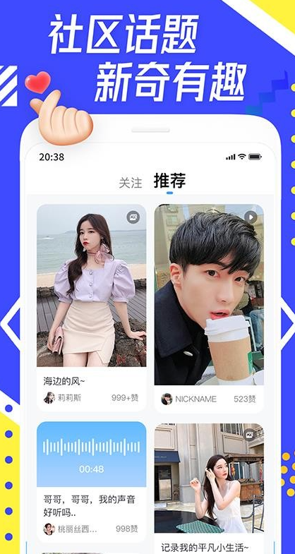 每聊最新免费版,是一款互动式的线上聊天交友社区软件,用户可快速匹配海量优质单身资源中属于你的那个ta,丰富的互动小节目实现零距离互动聊天,拒绝尬聊,快速交友。