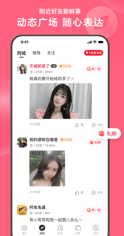 绯喵附近交友最新版是一个最新上线的同城交友软件,可以在线一键搜索附近的人,和他们来个打个招呼吧,可以快速交到朋友一起玩,用户也可以在线发布短视频,分享你的生活,可以在这里找到和你兴趣相投的用户,每天签到还会有奖励哦。