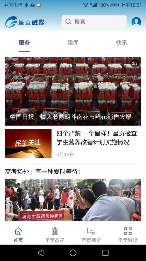 1、汇聚各市县新闻资讯、音视频直播点播节目和生活服务信息;