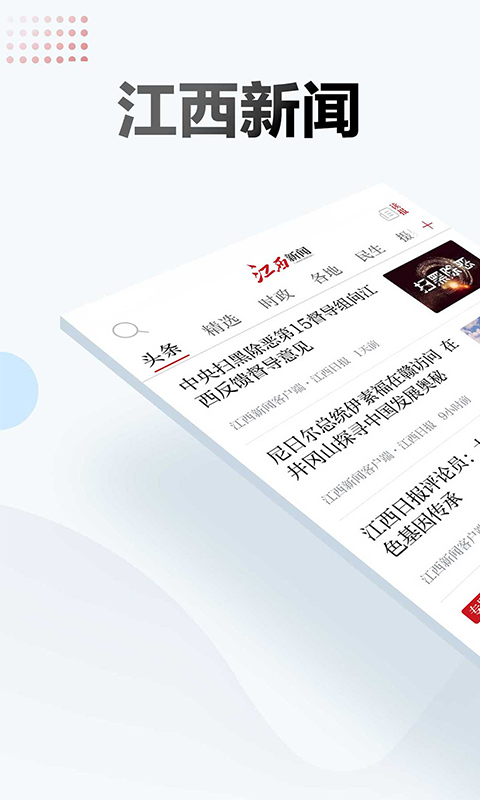 江西新闻今日头条新闻版,是一款新闻资讯类的手机软件,专为江西朋友们打造,软件上面有江西的广播电台可以收听,还最新的新闻资讯、民生民情、公益活动、生活娱乐的等等方便,足不出户尽享周边天下事。