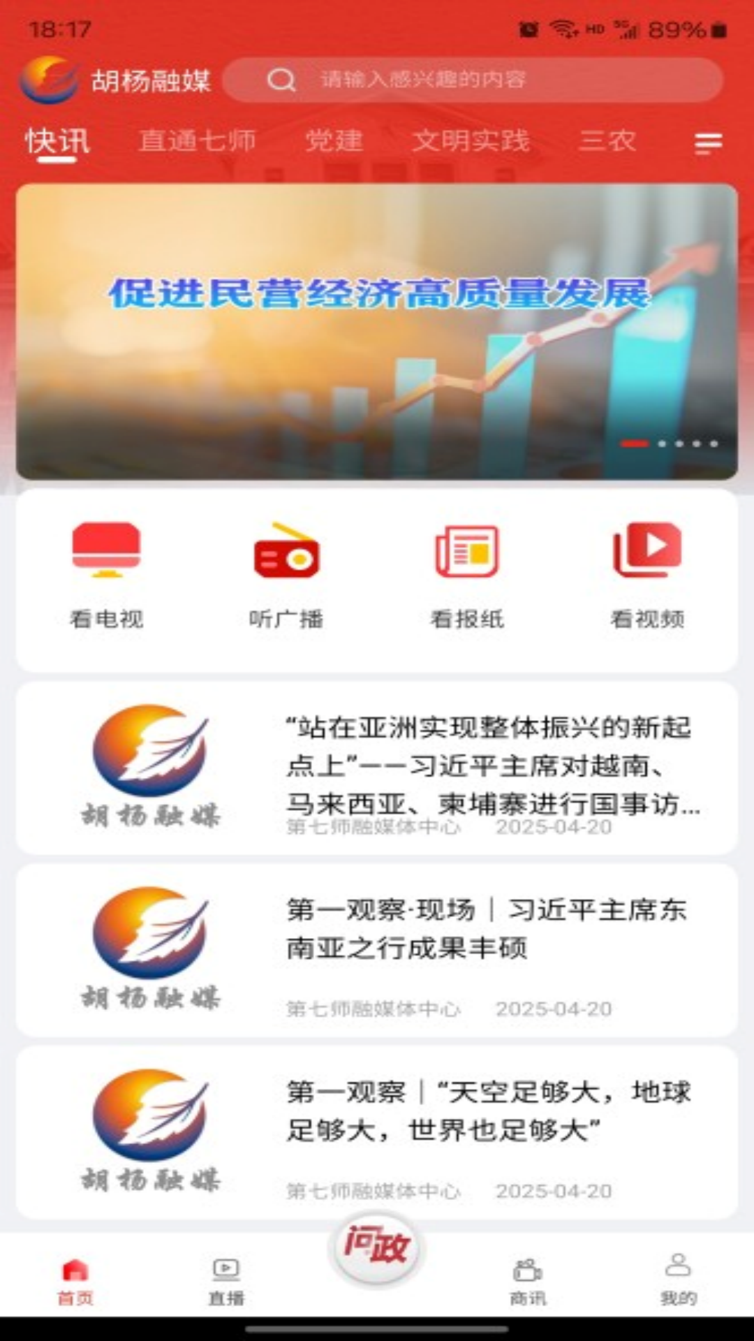 1、专为胡杨河制作的融媒体移动平台,平台拥有新闻资讯,电视;