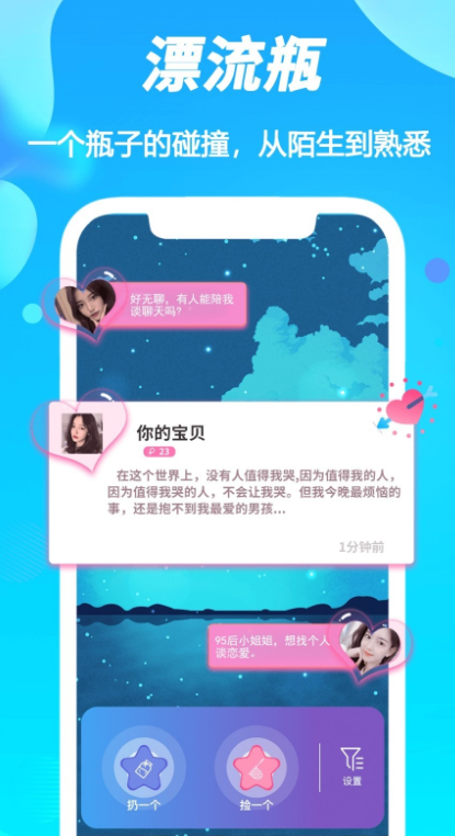 陌客漂流瓶,和其他APP不一样的漂流瓶社交软件。