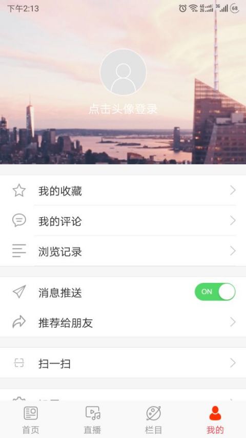 4、来到软件我的页面可使用我的收藏、我的评论、浏览记录、消息推送等功能。