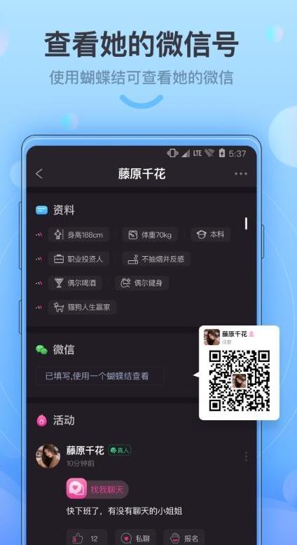 使用蝴蝶结道具,用户可以直接私聊和查看并添加对方微信号