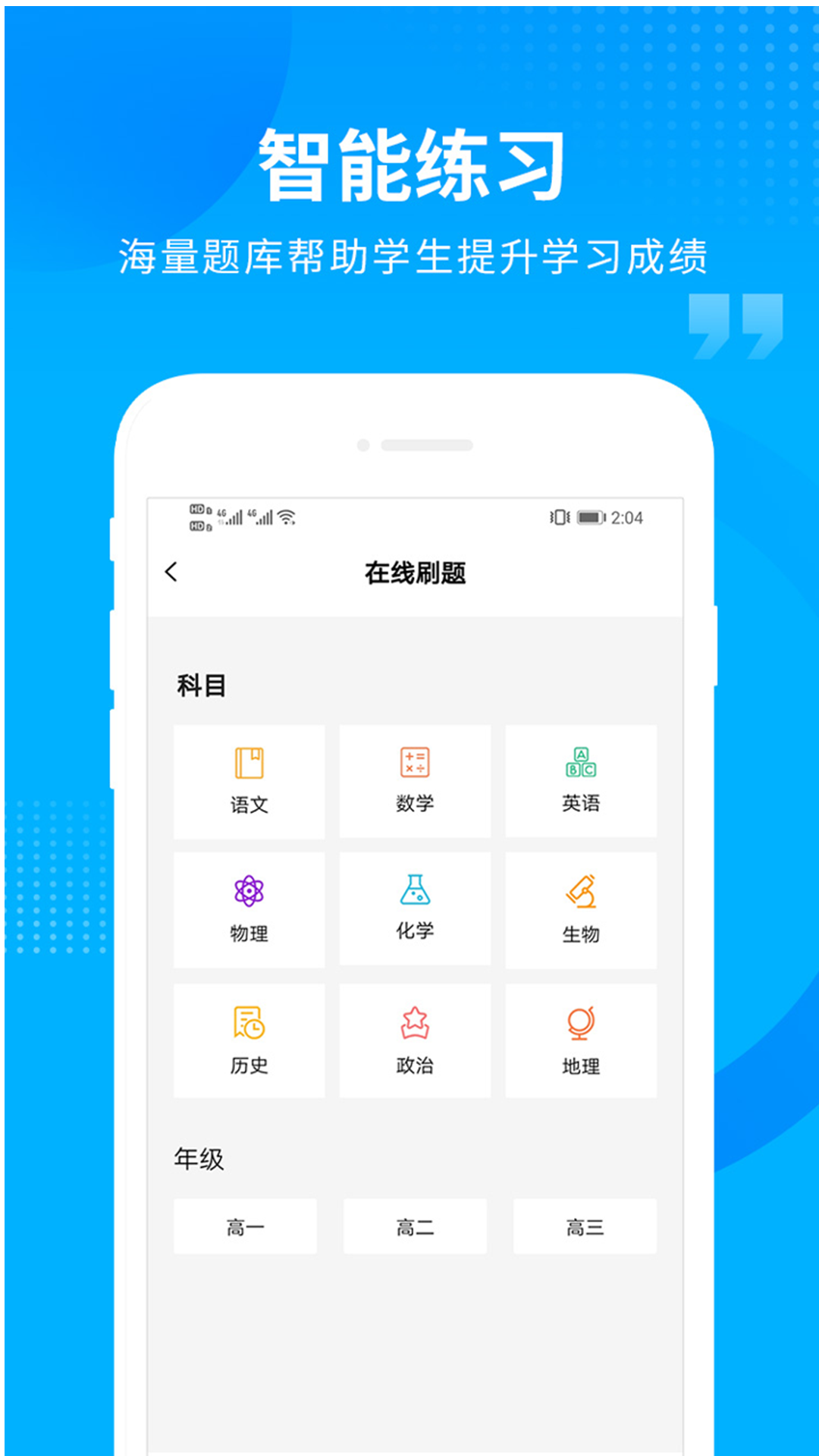 2.海量题库帮助学生提高学习成绩,轻松在线进行智能练习,轻松刷题供你学习。