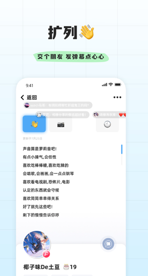 你可以通过“扩列”认识不同的有趣的人,你们可以文字聊天,也可以用你们的虚拟形象进行互动