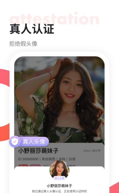 2. 90%的聊天用户已通过真实人认证,严格的机器+真实人头像的人工审核;