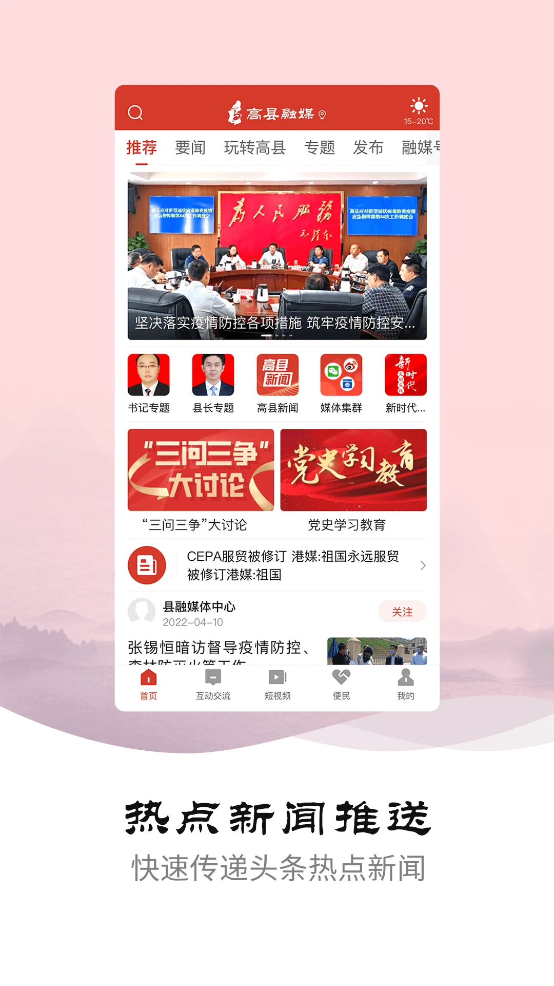 高县融媒是一款非常值得下载的高县本地新闻软件。有了这款软件之后足不出户就能轻松知晓周边热点以及天下大事。从查天气,到查社保等等,丰富的功能让你轻松的在线办理相关的政务事项。