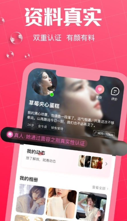一款真实可靠的约会交友平台,为你快速匹配有趣的人,真实互动聊天,快来下载感受一下吧!