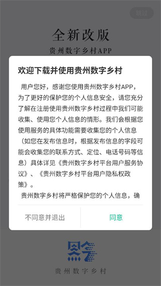 1、下载安装贵州数字乡村app,点击同意即可进入下一步啦。