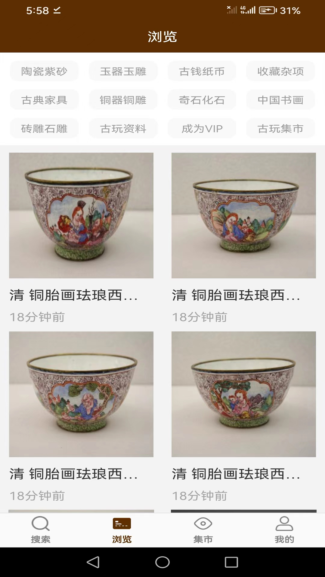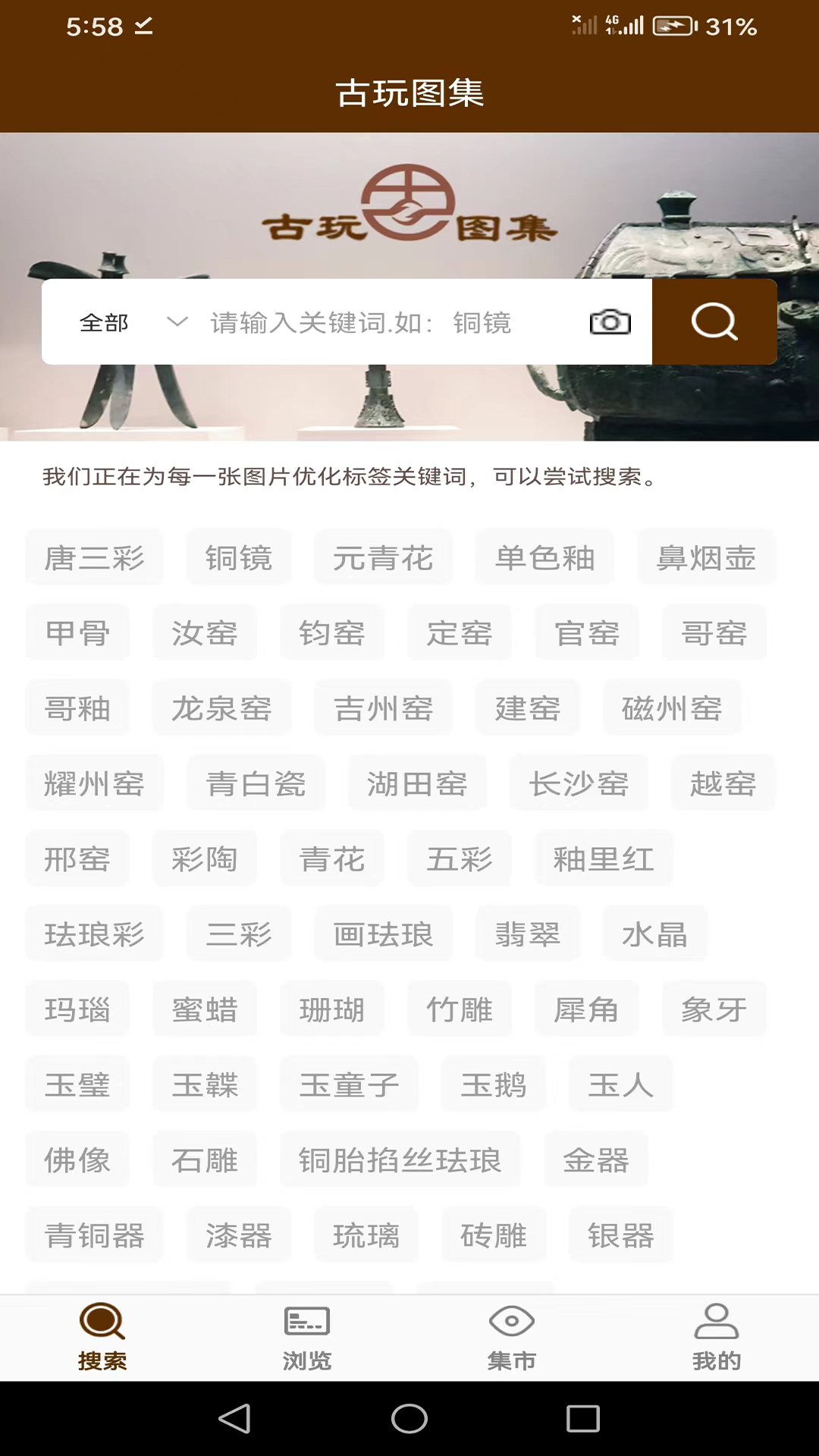 古玩图集app并且这里支持鉴定的古玩包括木器、货币、玉器、书画、铜器等,如果你由此兴趣的话可以到此体验一下。同时,这里也是古玩商城,用户可以在此购买出售中的古玩,特别适合喜欢收藏古玩的人,在此可以选购自己喜欢的、有收藏价值的古玩,还在等什么,好奇的话就下载体验吧。
