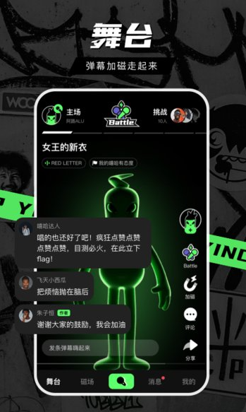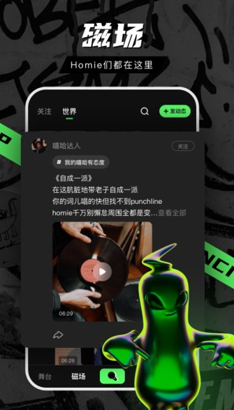 音磁APP说唱社交软件,本年度最火的一款嘻哈社交互动平台,不但长期有网上知名人士存在,而且还提供丰富Beat任你挑选、押韵工具助你写词,让你们在写完之后,还能在线互动,查看反馈情况,从而创作出优质的说唱作品来。
