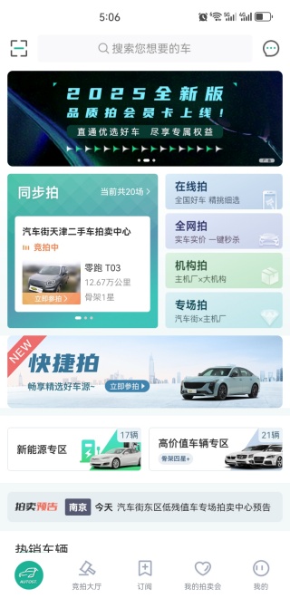 3、在竞拍大厅可看到推荐的拍卖车型,也可直接搜索车型。