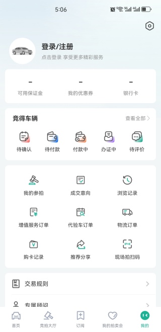 4、在软件我的页面可看到待确认、待付款、付款中、办证中等竞拍车辆信息。