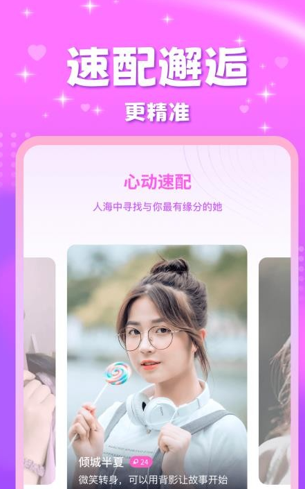 2、【精准匹配】为你匹配一秒就能聊起来的同城附近有趣异性,根据爱好进行推荐;