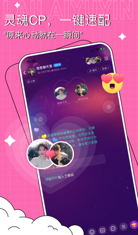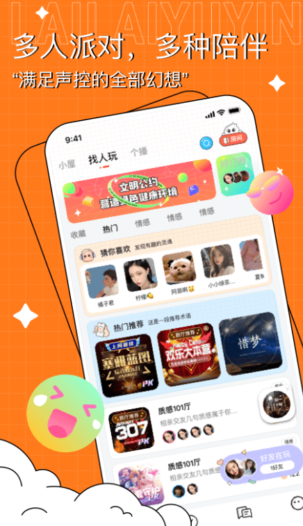 来来语音app是一款十分好用又受大众喜欢的语音交友平台,这里的交由模式十分优质,对于很多宅男宅女来说是交友、聊天的必备神器!大家快来试试吧!