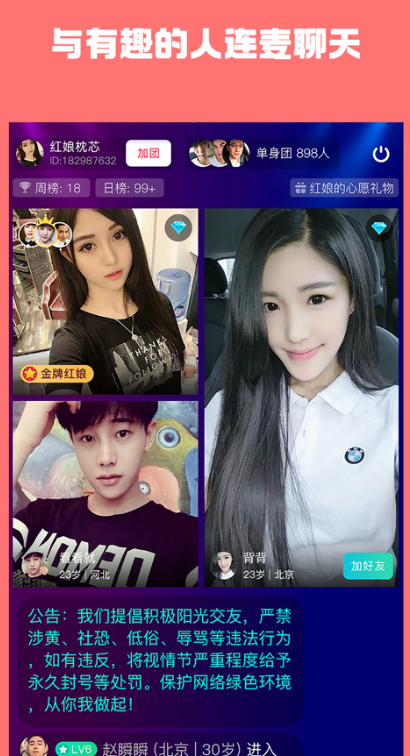 1.加入聊天室,在线抢占空间,通过视频与众多网友在线聊天!