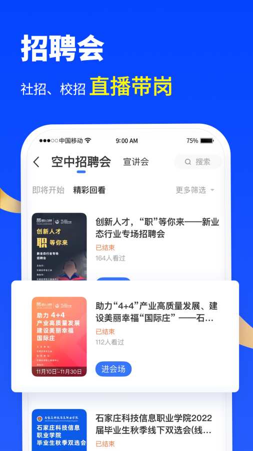 2、进入应用首页,用户可以选择我要应聘或我要招人。