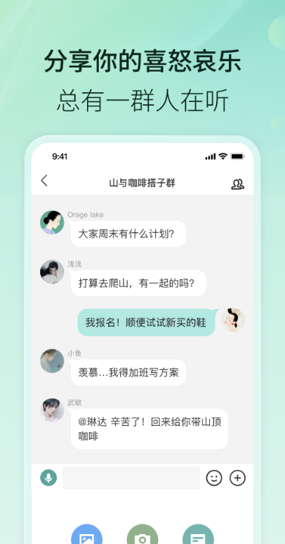 群空间热闹开启,群好友的私密朋友圈,记录分享心情与故事,定制你的好友纪念册。