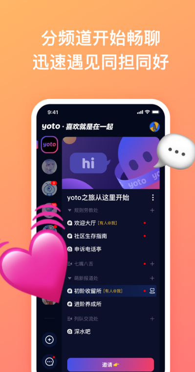 yoto app是一款全网超级火爆的手机交友约会软件,想要一款绿色纯净的社交神器的话,赶紧来yx007游戏网下载此软件,此软件内群组不设置人数上限,在同一群组内可以进行自由的畅聊,聊天模式也是相当的丰富,让你和异性的交流不再枯燥,也可以分频道畅聊,迅速遇见知心朋友甚至生命中对的那个人。