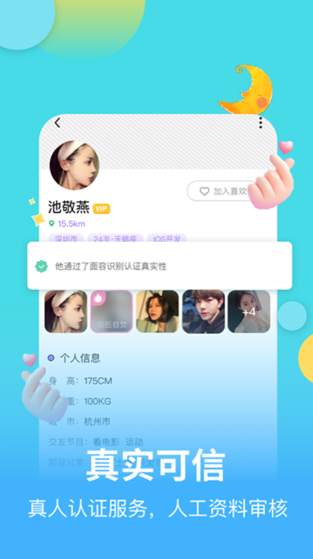 一款聊天交友软件,一款新的小区私人交友应用,每个人的信息都经过严格认证,拒绝虚假信息。实时跟踪城市周围的动态信息,找到合适的朋友,与喜欢的人互动。寻找更多的新伙伴,轻松交朋友。喜欢快速下载!