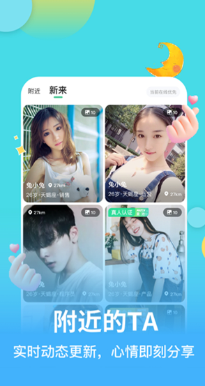 1、用户进入首页,任你在线定位,快速查看附近的异性。