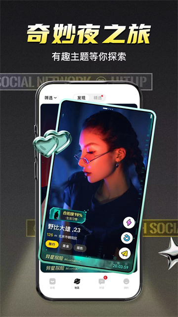 首创目的语言系统,用一个共同目的代替无聊的开场白,为你推送有趣、会聊、个性、独特的朋友,快速找到和你此时此刻交友目的一致的伙伴。再也不怕找不到对的人,再也不怕浪费时间,再也不怕因直接而尴尬,率性而为!