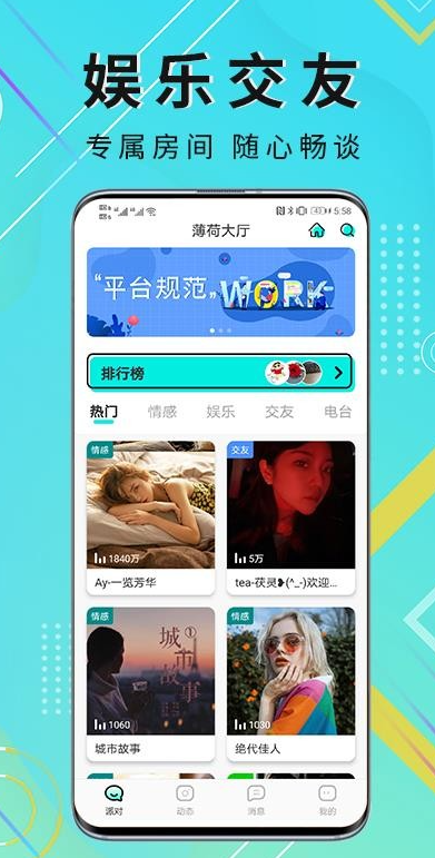 【娱乐聊天室】:交友、相亲、K歌、扩列超多超好玩的娱乐派对,让你不再是一个人~