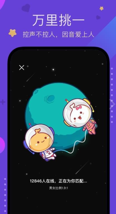 在软件中大家都凭借声音来交流,彼此不知道样貌,使其充满了神秘面纱,凭借感兴趣的话题来增进感情。