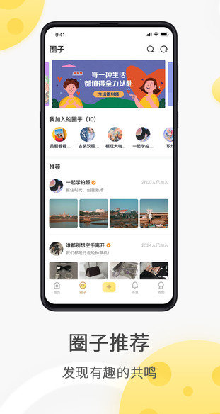 【加入圈子】发现不一样的生活方式,带你欣赏各个领域中的璀璨烟花。分享欲是最直观的友谊加速器,在同一个世界里找到那个为你而生的“知己”,聊心动话题,撩知心好友。