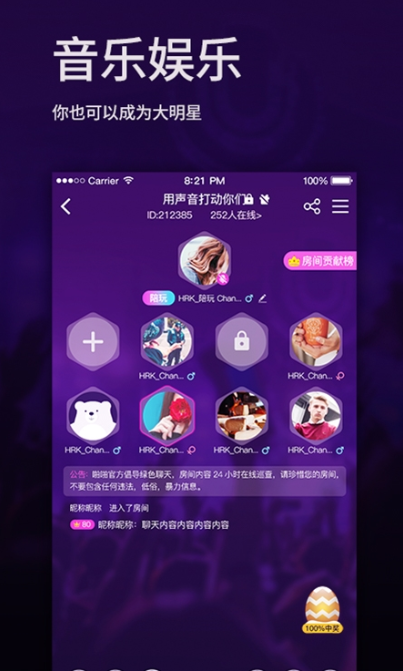 【互动交友】多人语音房,寻找自己喜欢的声音,各种好听的声音任你选择,也可以用声音展示自己,与高颜值主播组CP,让你从此不再孤单;