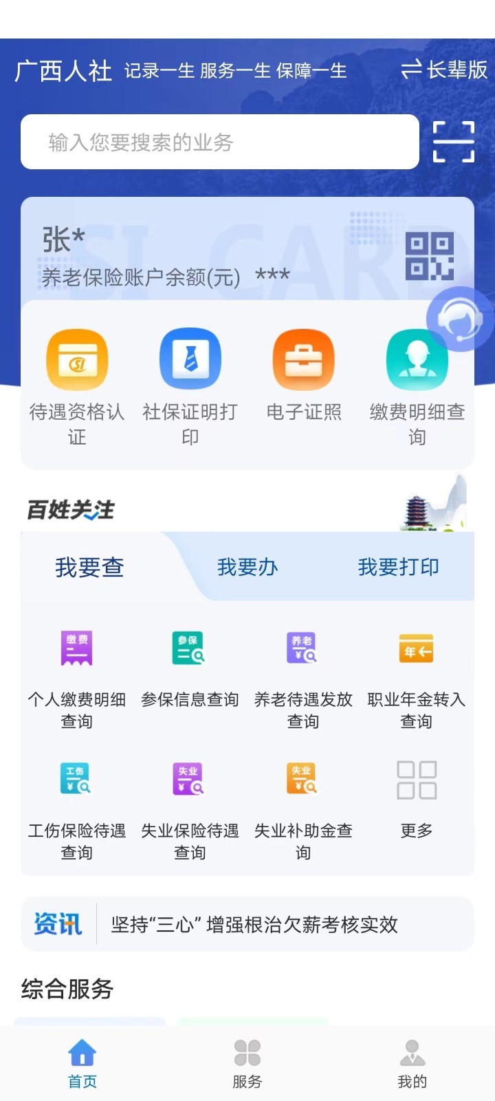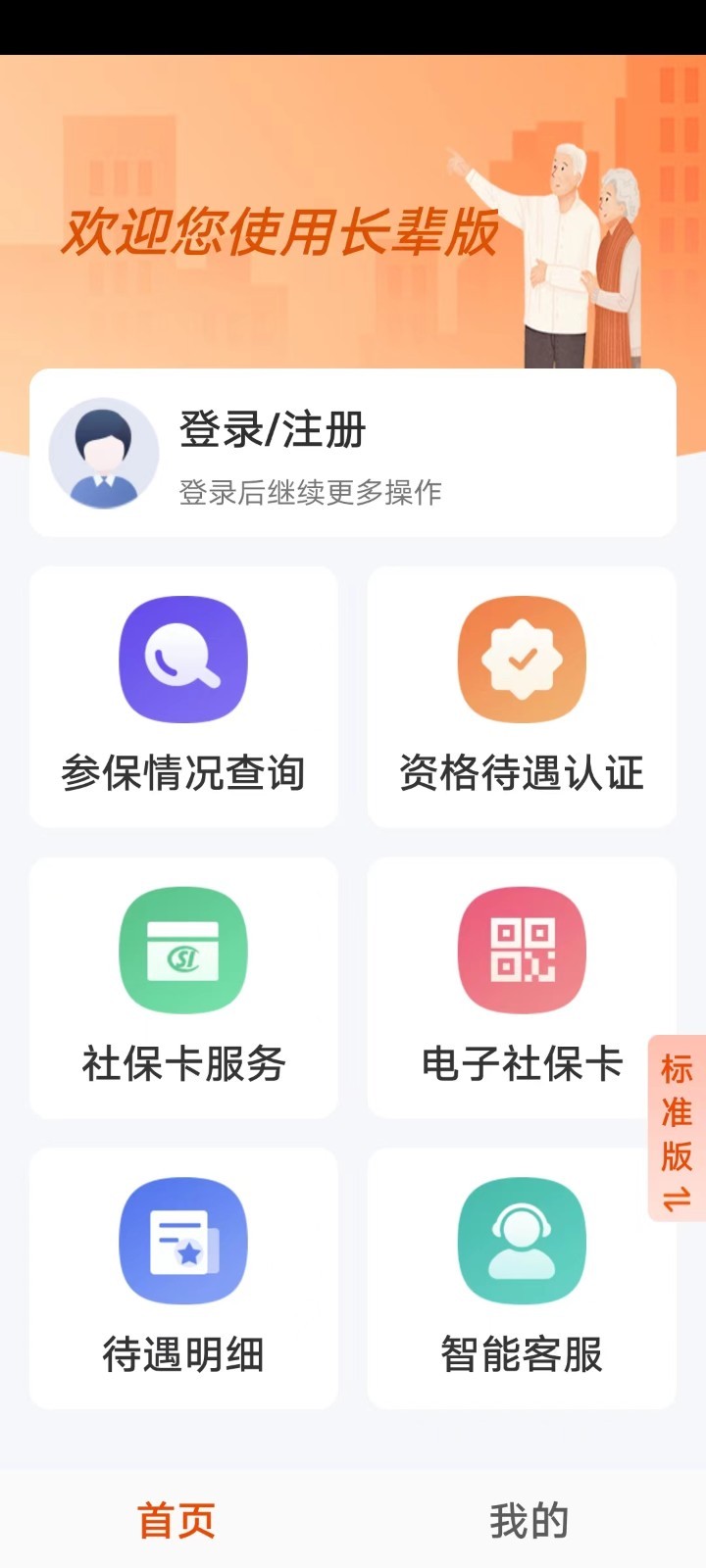 4、来到软件长辈版立登录后可使用参保查询、资格待遇认证等功能。