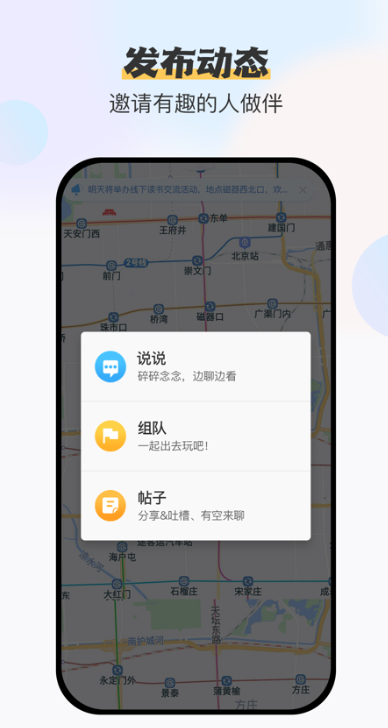 旁友应用程序是一款社交软件,可以与地图上的人聊天,并组建团队进行游戏。它可以让你有身边的朋友陪你下班和假期。遇到问题,可以就近找人帮忙。