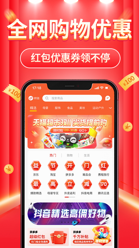 这是一款可以省钱、分享、赚钱的移动应用。应用拥有大量的产品,能够满足人们日常生活的需求。应用用户一站式购买,基本可以找到隐藏的优惠券,节省了大量开支。欢迎下载并在需要时使用。