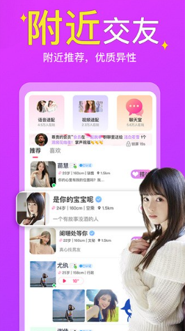 一款面向年轻人的社交网络软件,根据你的个性标签,将你喜欢的异性恋用户推荐到首页,根据你所在的城市,将你身边的异性恋用户集中在附件界面显示,这样你就可以有选择地交朋友,快速找到你喜欢的TA。每一位美女都经过了严格的平台审核和真人认证。