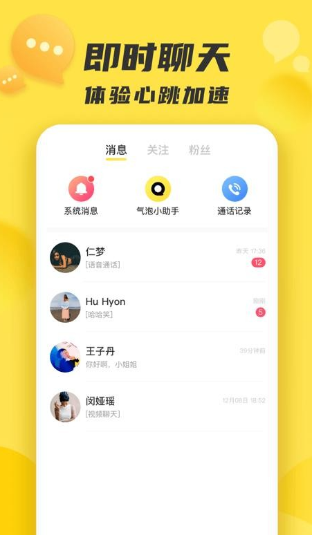 气泡交友app:一款最新推出的手机社交软件,我们此款气泡交友app上面有着海量的高品质用户和多种的手机社交方式,能够在线的帮你完成随时随地的社交体验,并且我们平台上面有着专门的手机社交审核功能,能够在线的让你体会到我们平台的优质的社交体验,感兴趣的小伙伴们点击下载安装体验吧。