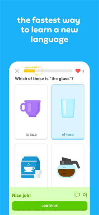 多邻国定制小节课程,每次只需五分钟,让你不必拘泥于时空限制,小口小口啃外语,随时提升外语能力!每天定时定量学习、效果更好喔!