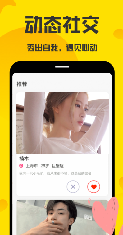 1、用户可以进入首页,在首页上可以看到为你推荐的异性。