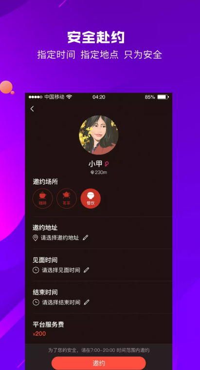 1、随意选择:可以随时邀请离线或约会的地方可以自己选择。社交的自由度很高,请不要错过。
