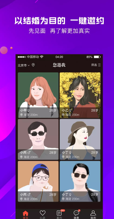 您邀我app是一款全新发布的手机聊天交友软件,此软件是完全以结婚为目的,不是玩玩的。这里的用户的信息真实,都是经过实名认证的。智能化的匹配极致,让你可以遇到自己心动的人,互相有好感的话,可以一键快速发起约会,感兴趣的可以来007游戏网下载