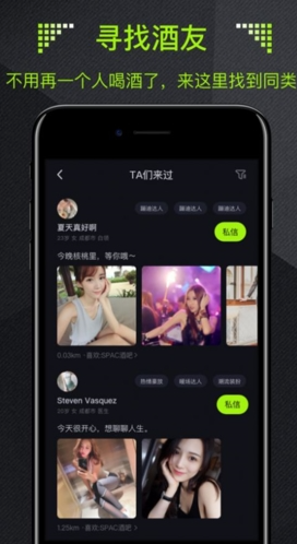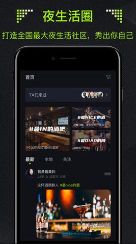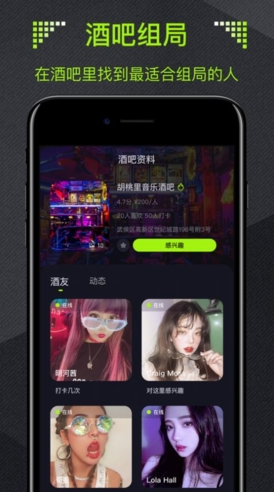 酒陌app:一款最新推出的酒吧交友软件,你可以在我们的平台上面在线的寻找到很多的高品质的用户以及多种的酒友,并且你还可以一键在线的发起各种和夜生活有关的话题等等,同城动态功能更是能够让更加快速的找到自己喜欢的各种东西,感兴趣的小伙伴们点击下载安装体验吧。