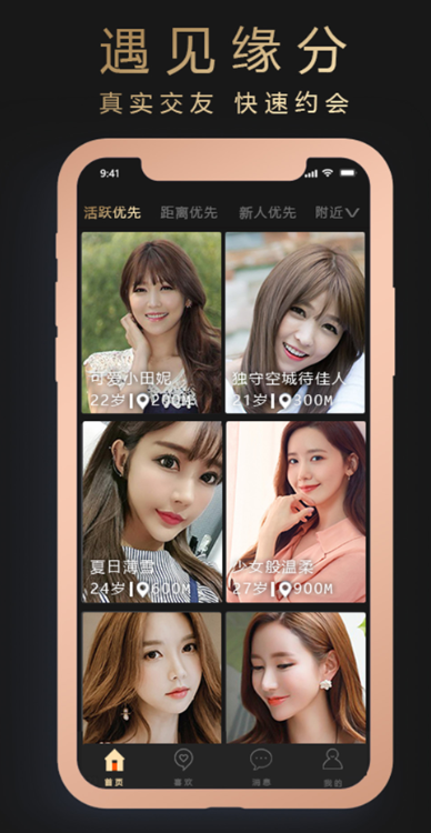 2、任你快速注册进入首页,在首页上可以自由挑选异性。