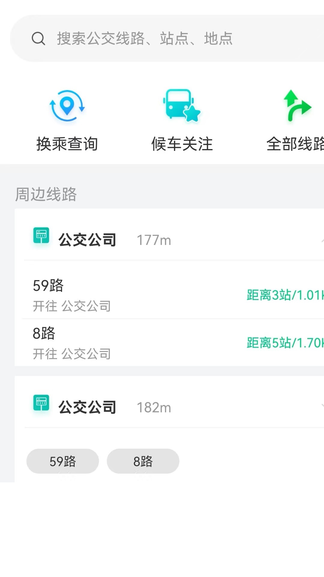 2.周边线路:根据用户所在位置推荐周围途径公交,快捷查询