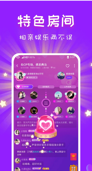 【个性房间】相亲房,畅聊房,K歌房超多个性房间,展示才艺,听歌陪伴,温情相待。